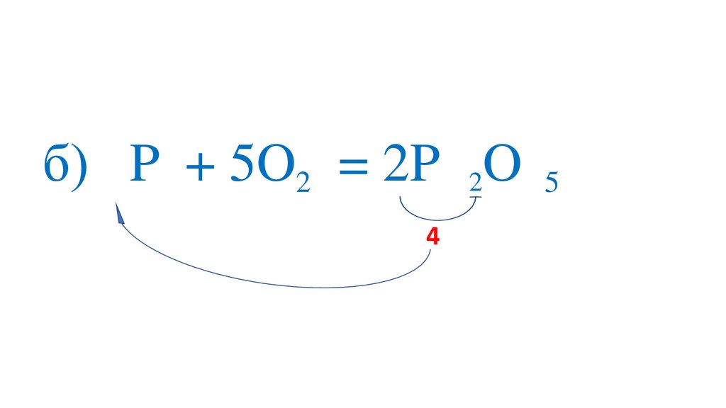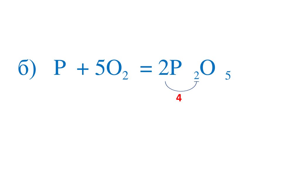 б) 4P + 5O2 = 2P O 5+5