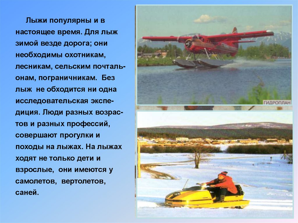 Лыжи популярны и внастоящее время. Для лыж
