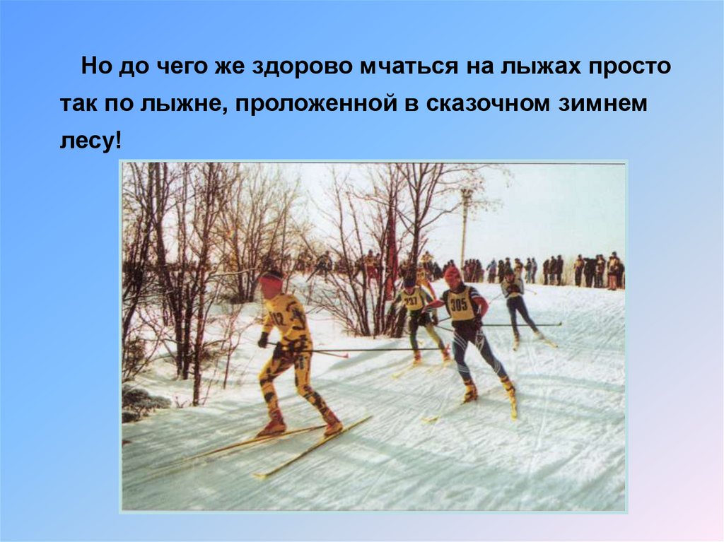 Но до чего же здорово мчаться на лыжах простотак по лыжне, проложенной в сказочном зимнем