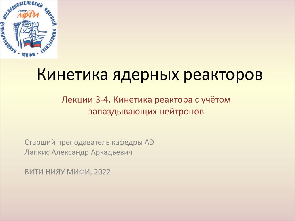 Лекции 3-4. Кинетика реактора с учётомзапаздывающих нейтронов