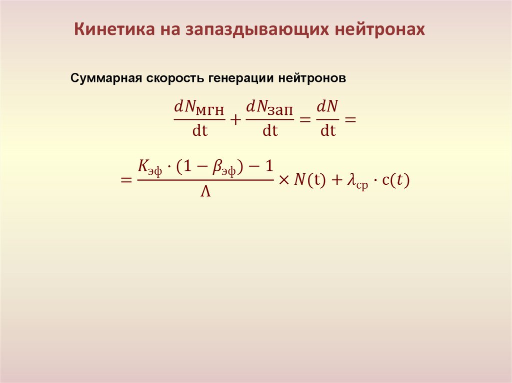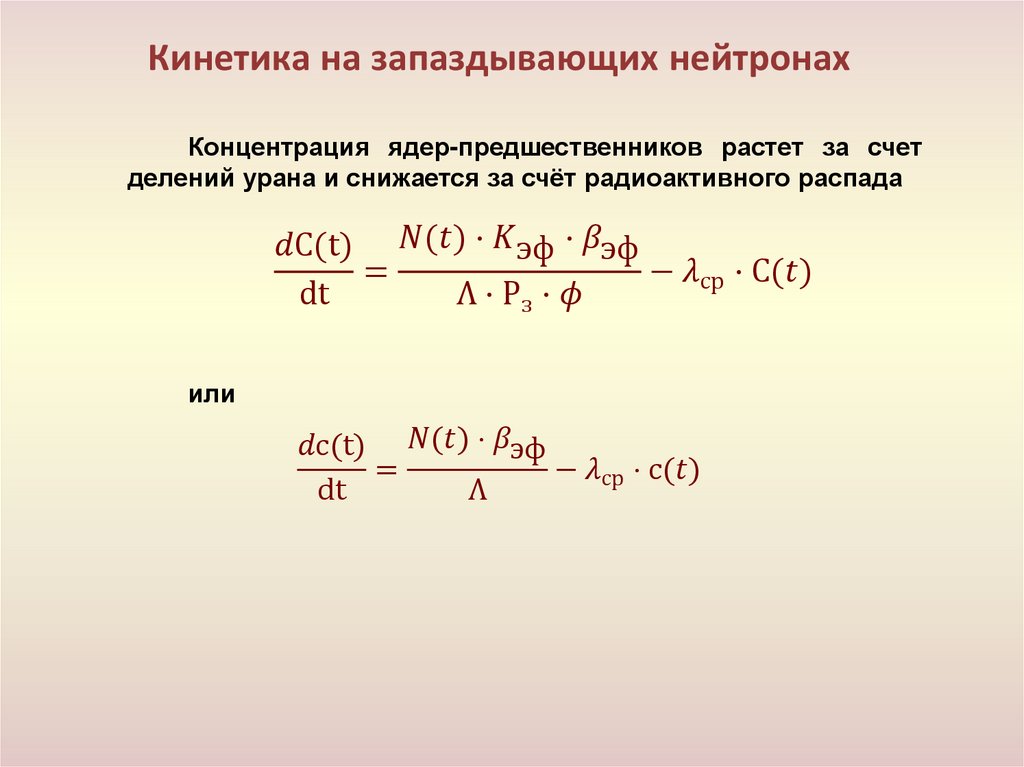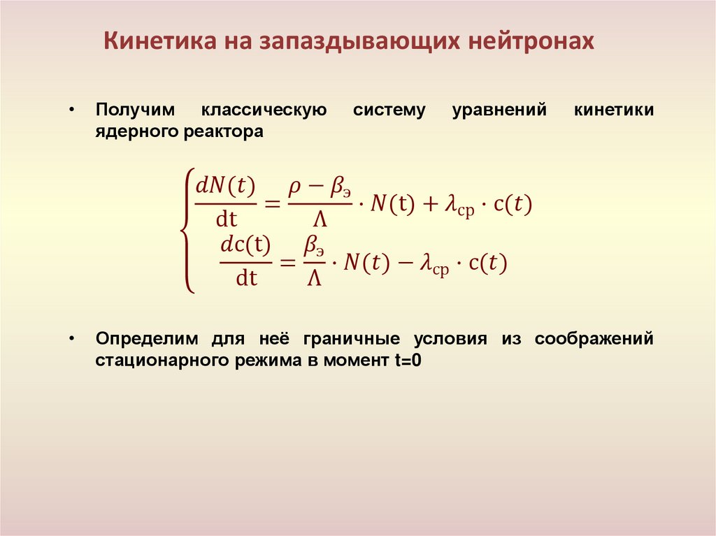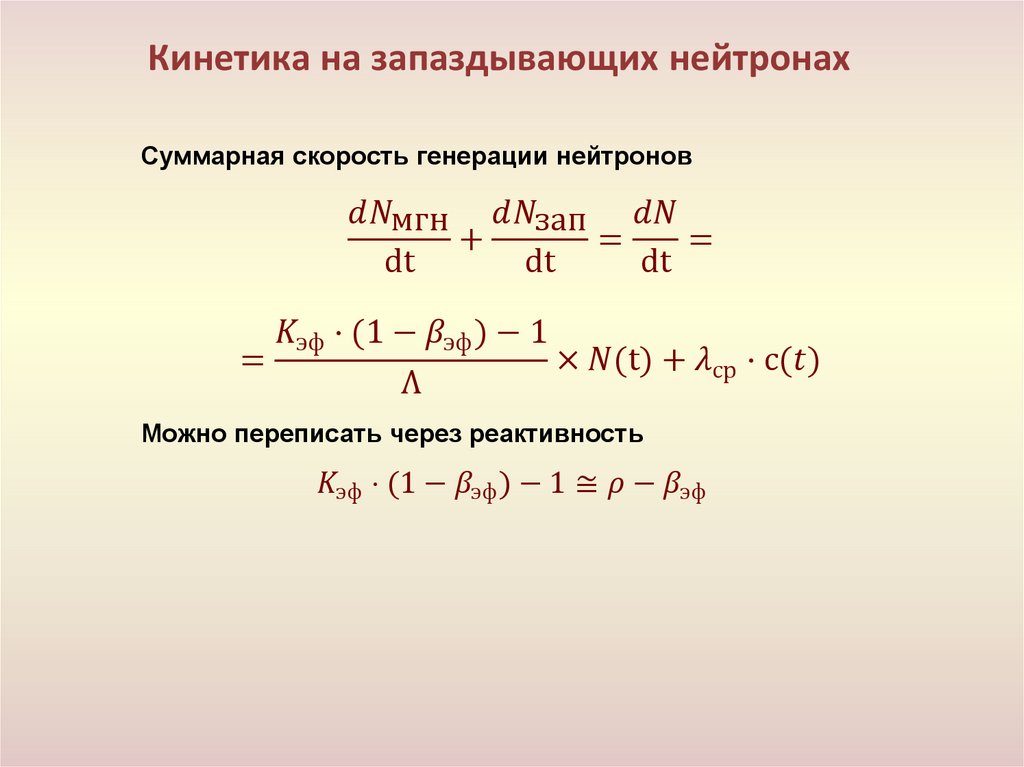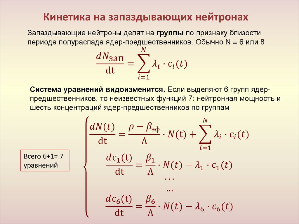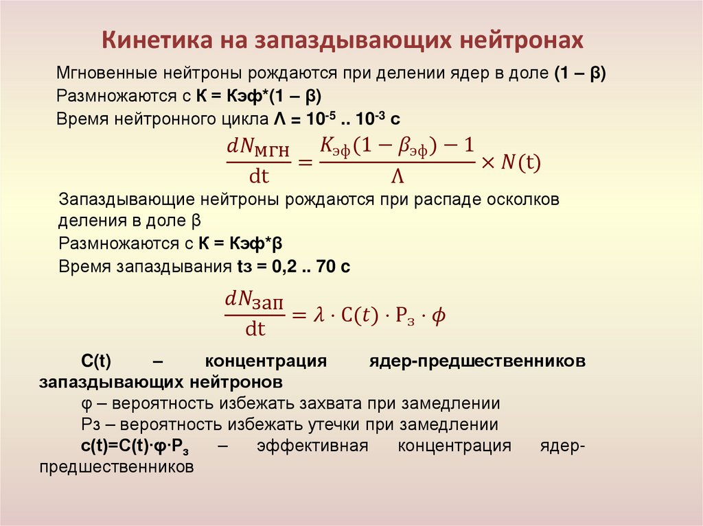 • Кинетика реактора с учётом запаздывающих