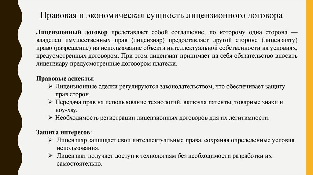 Лицензионные сделки регулируются законодательством, что обеспечивает защиту