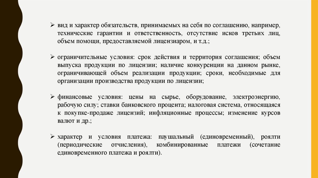 предусмотренных договором. При этом лицензиат принимает на себя обязательство вносить