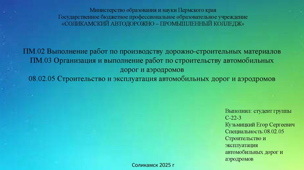 ПМ.02 Выполнение работ по производству дорожно-строительных материалов