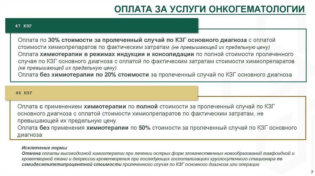 ОПЛАТА ЗА УСЛУГИ ОНКОГЕМАТОЛОГИИ47 КЗГ