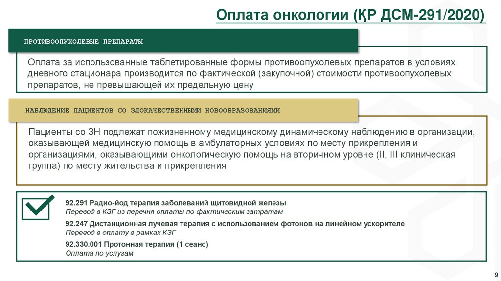 Оплата за использованные таблетированные формы противоопухолевых препаратов в условиях