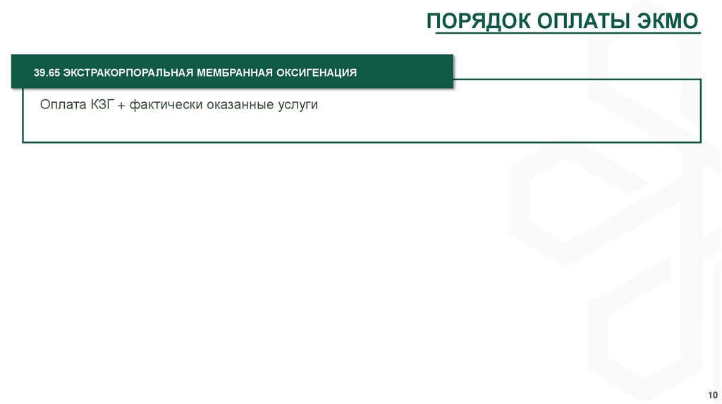 ПОРЯДОК ОПЛАТЫ ЭКМО39.65 ЭКСТРАКОРПОРАЛЬНАЯ МЕМБРАННАЯ ОКСИГЕНАЦИЯ