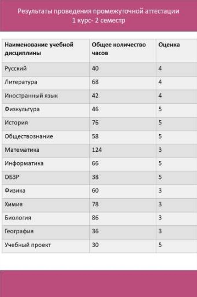 22. Результаты проведения промежуточной аттестации 1 курс- 2 семестр