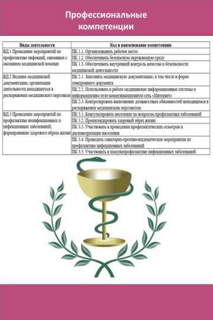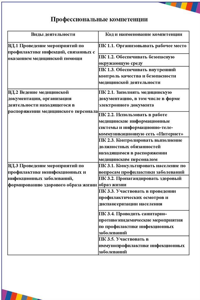 Профессиональные компетенцииВиды деятельности
