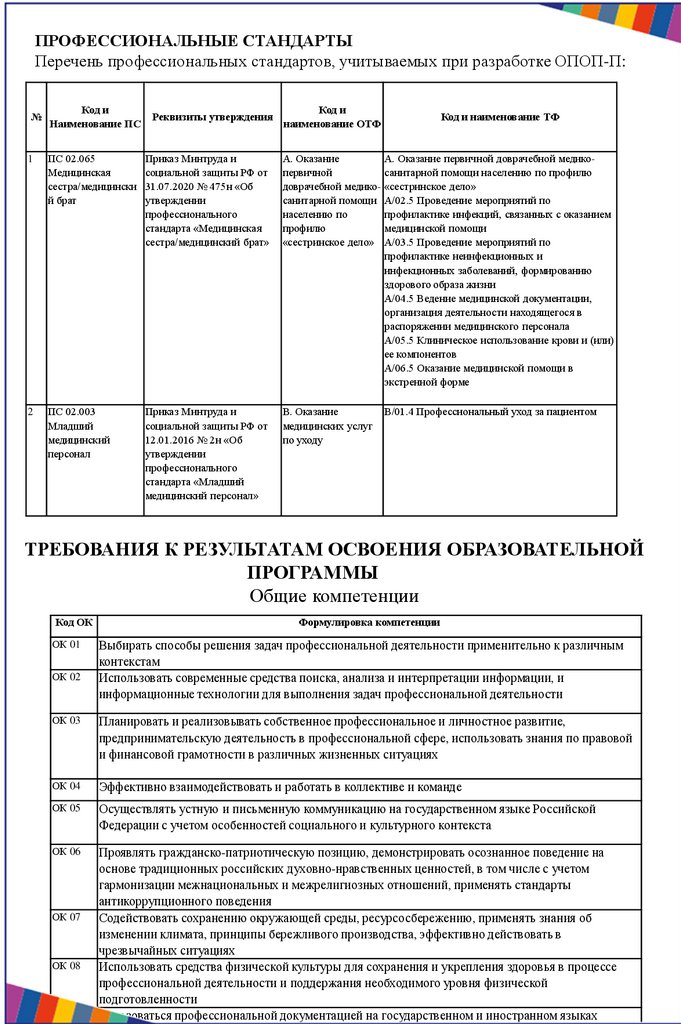 ПРОФЕССИОНАЛЬНЫЕ СТАНДАРТЫПеречень профессиональных стандартов, учитываемых при разработке ОПОП-П:
