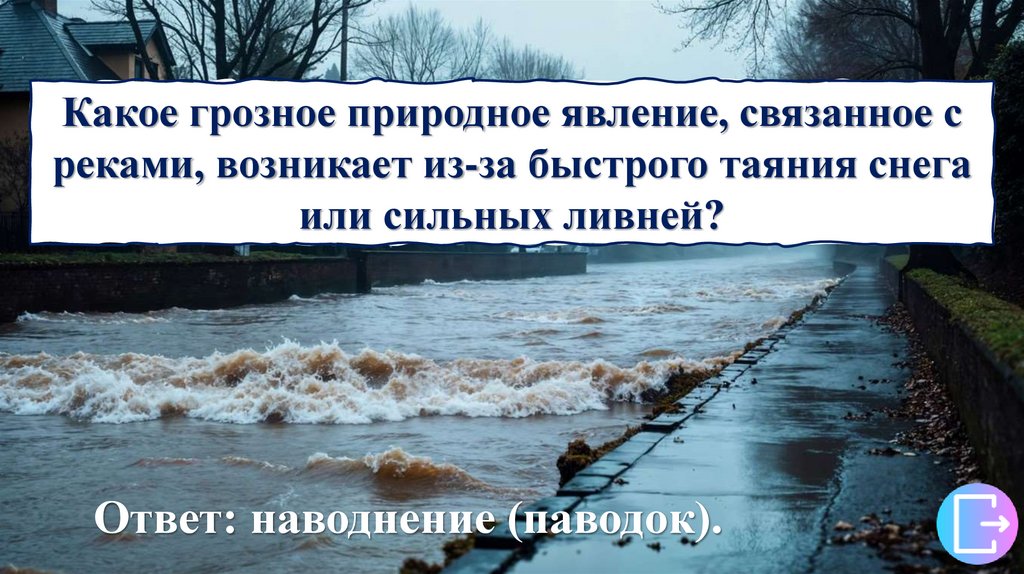 Какое грозное природное явление, связанное среками, возникает из-за быстрого таяния снега