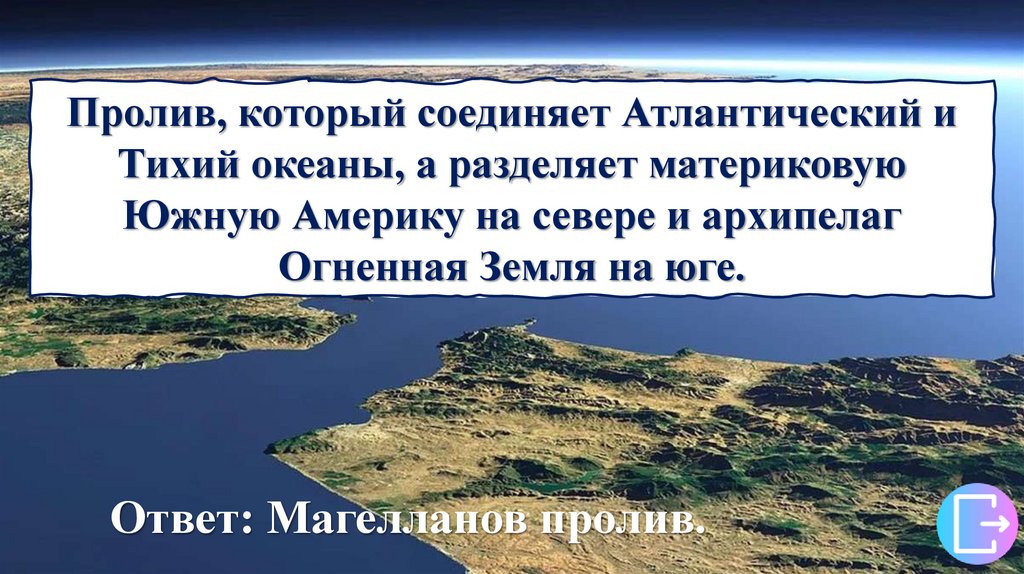 Пролив, который соединяет Атлантический иТихий океаны, а разделяет материковую
