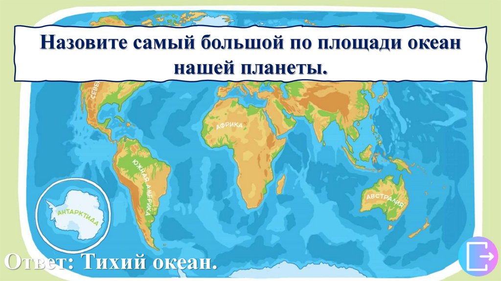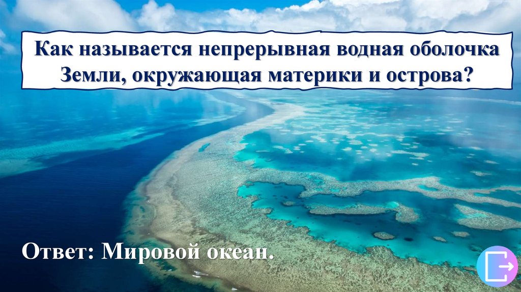 Как называется непрерывная водная оболочкаЗемли, окружающая материки и острова?