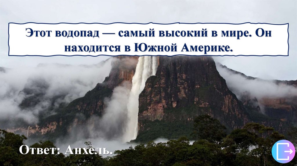 Этот водопад — самый высокий в мире. Оннаходится в Южной Америке.