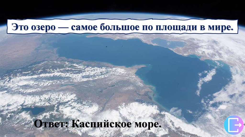 Это озеро — самое большое по площади в мире.Ответ: Каспийское море.