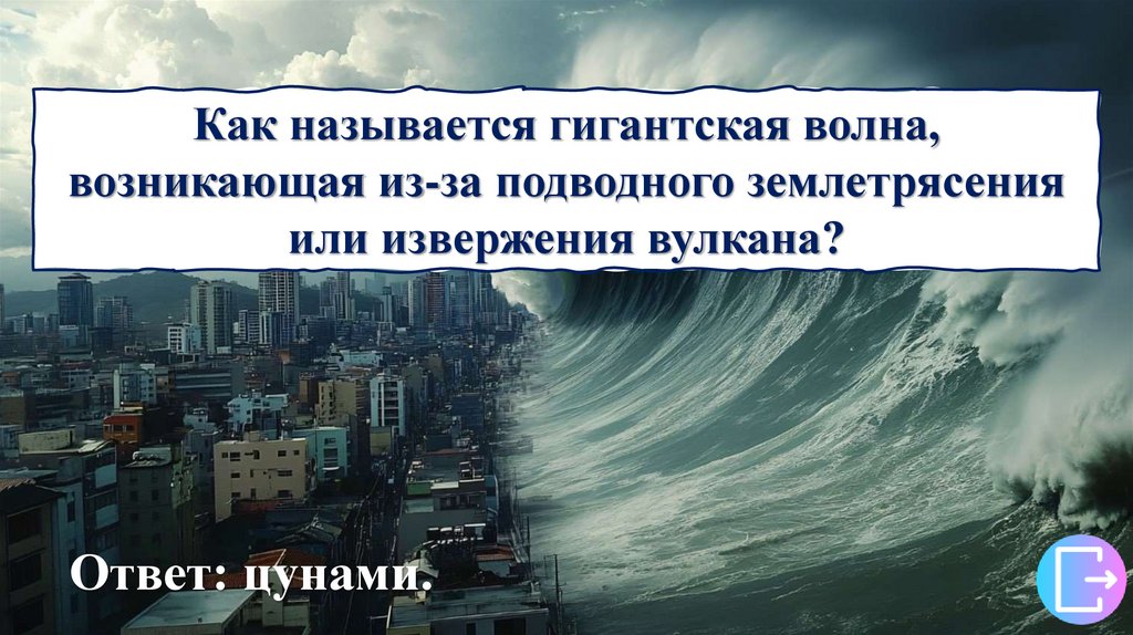 Как называется гигантская волна,возникающая из-за подводного землетрясения