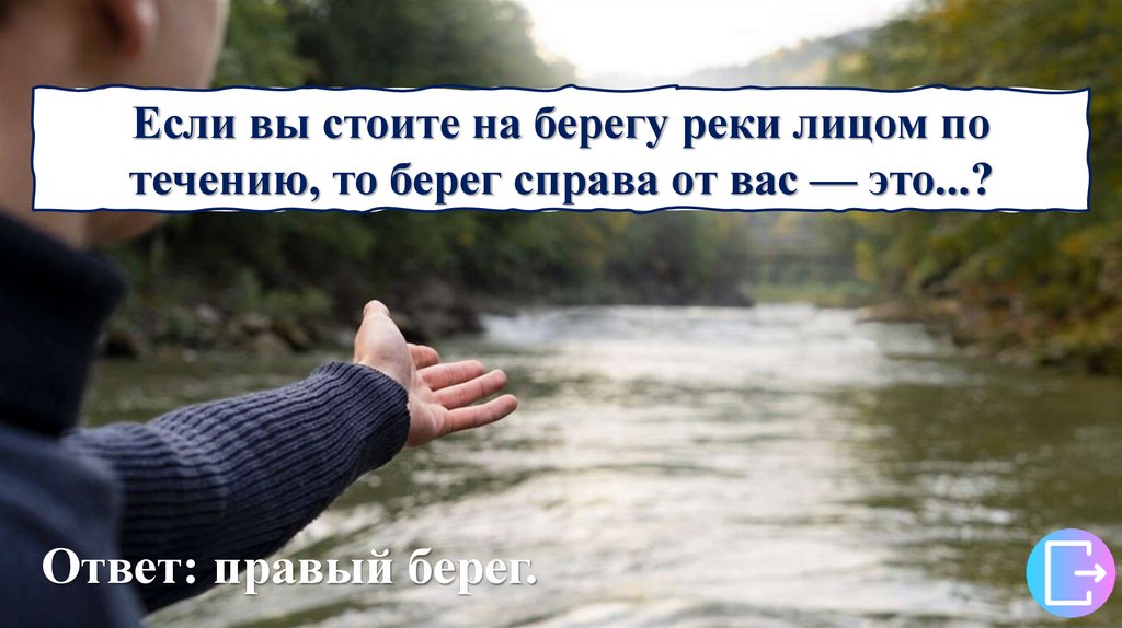 Если вы стоите на берегу реки лицом потечению, то берег справа от вас — это...?