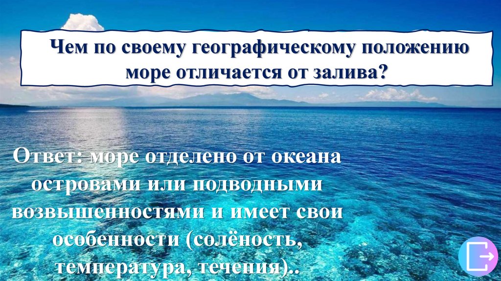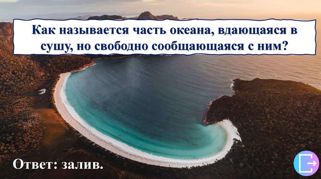 Как называется часть океана, вдающаяся всушу, но свободно сообщающаяся с ним?