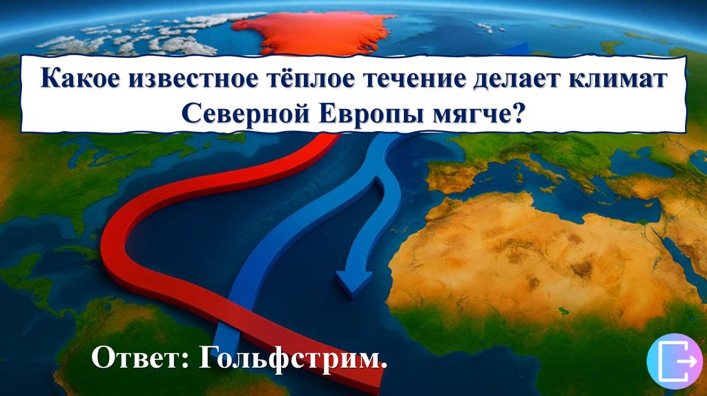 Какое известное тёплое течение делает климатСеверной Европы мягче?