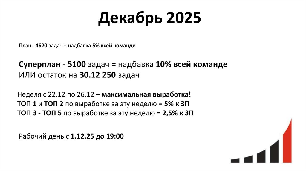 Декабрь 2025План - 4620 задач = надбавка 5% всей команде