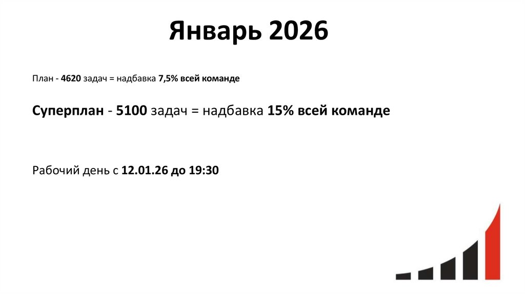 Январь 2026План - 4620 задач = надбавка 7,5% всей команде