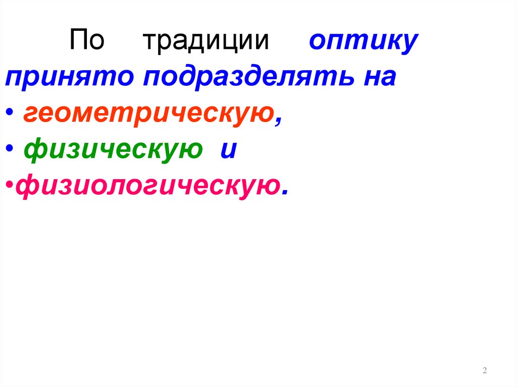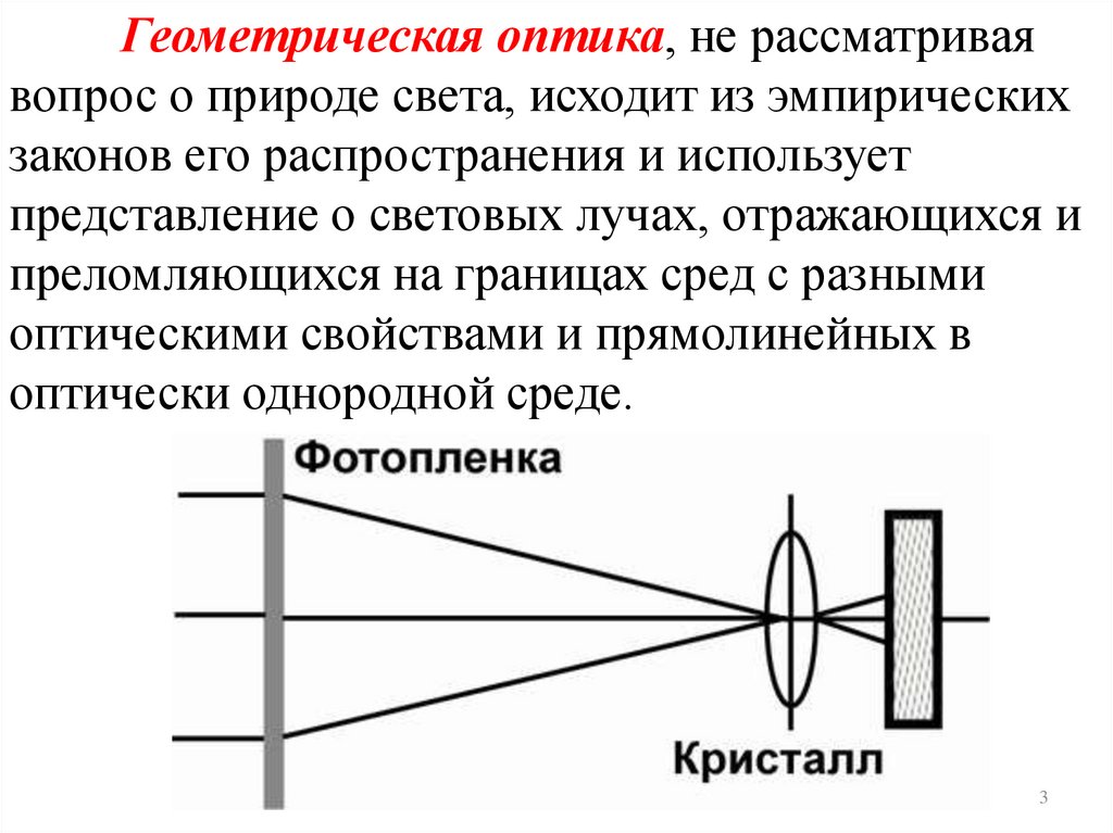 Геометрическая оптика, не рассматриваявопрос о природе света, исходит из эмпирических
