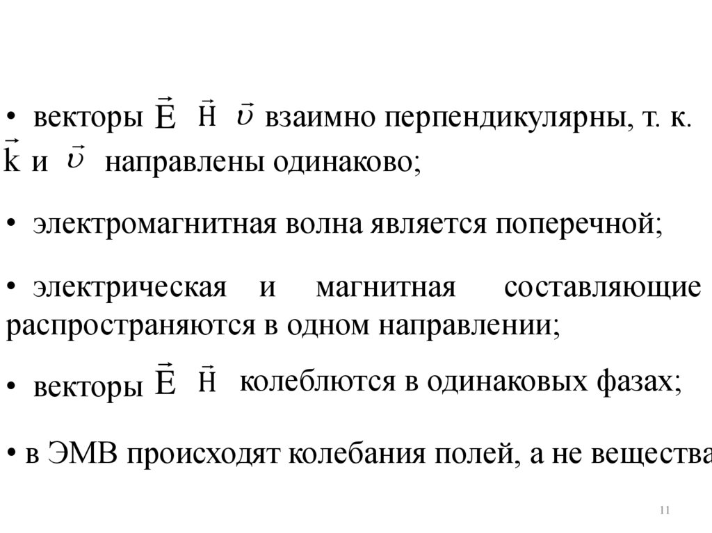 • векторы E Η взаимно перпендикулярны, т. к.k и направлены одинаково;