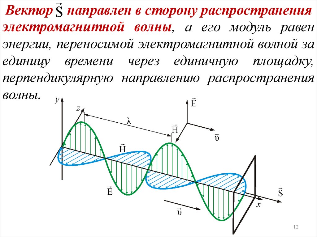 Вектор S направлен в сторону распространенияэлектромагнитной волны, а его модуль равен