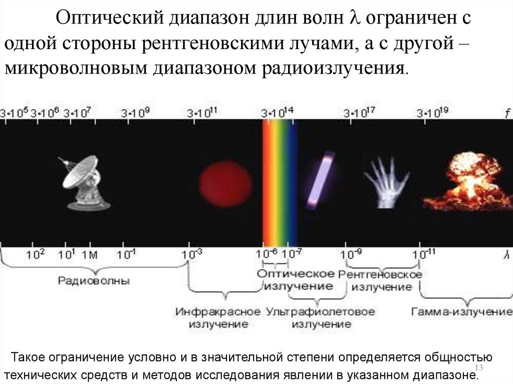 Оптический диапазон длин волн ограничен содной стороны рентгеновскими лучами, а с другой –
