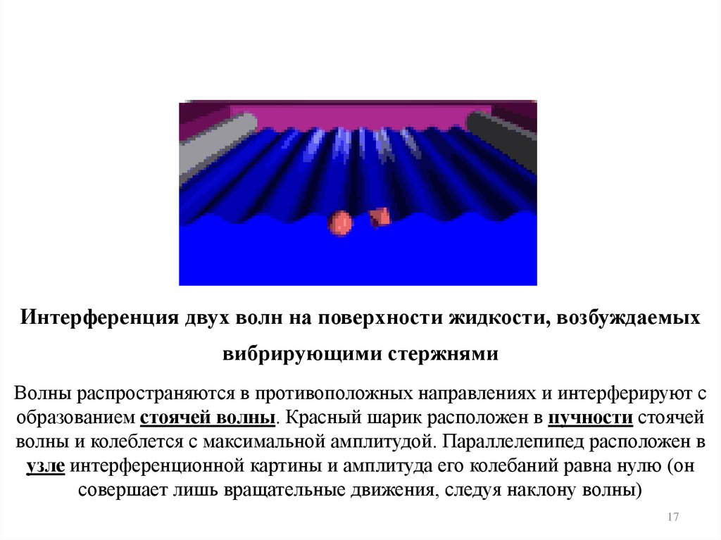 образованием стоячей волны. Красный шарик расположен в пучности стоячей