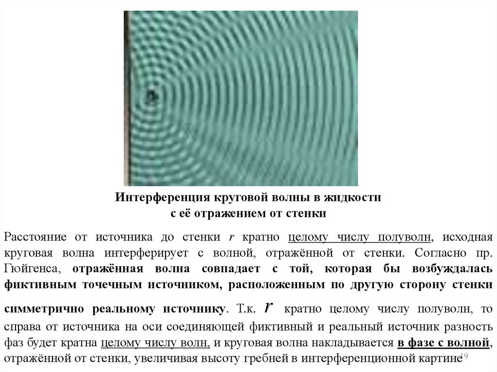 круговая волна интерферирует с волной, отражённой от стенки. Согласно пр.