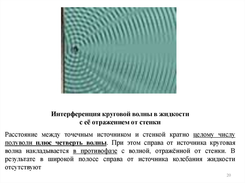 Интерференция круговой волны в жидкостис её отражением от стенки