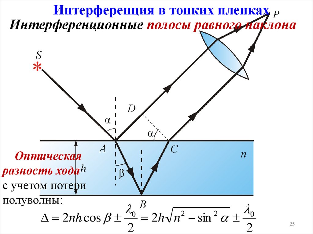 Интерференция в тонких пленкахИнтерференционные полосы равного наклона