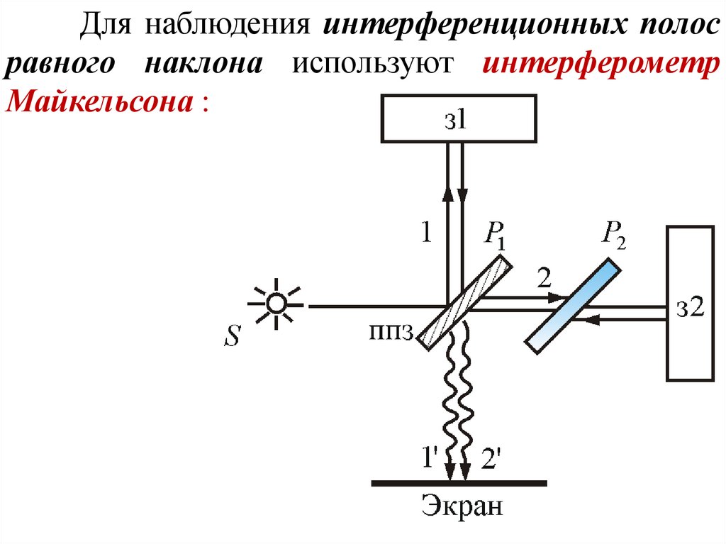 Для наблюдения интерференционных полосравного наклона используют интерферометр