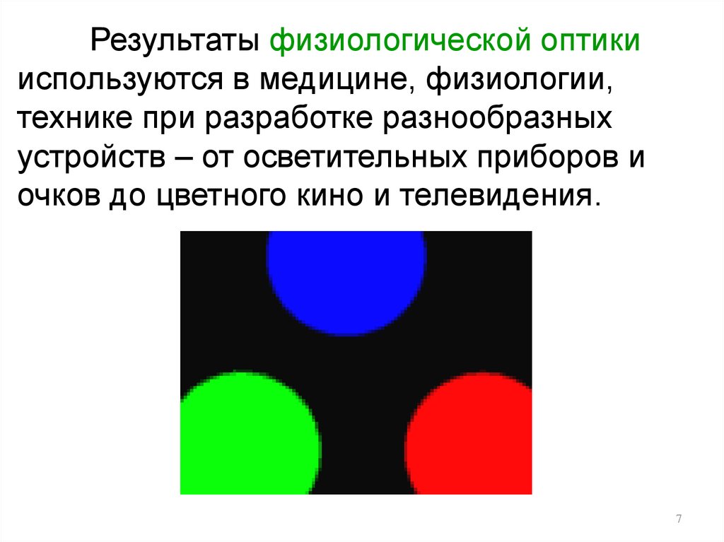 Результаты физиологической оптикииспользуются в медицине, физиологии,