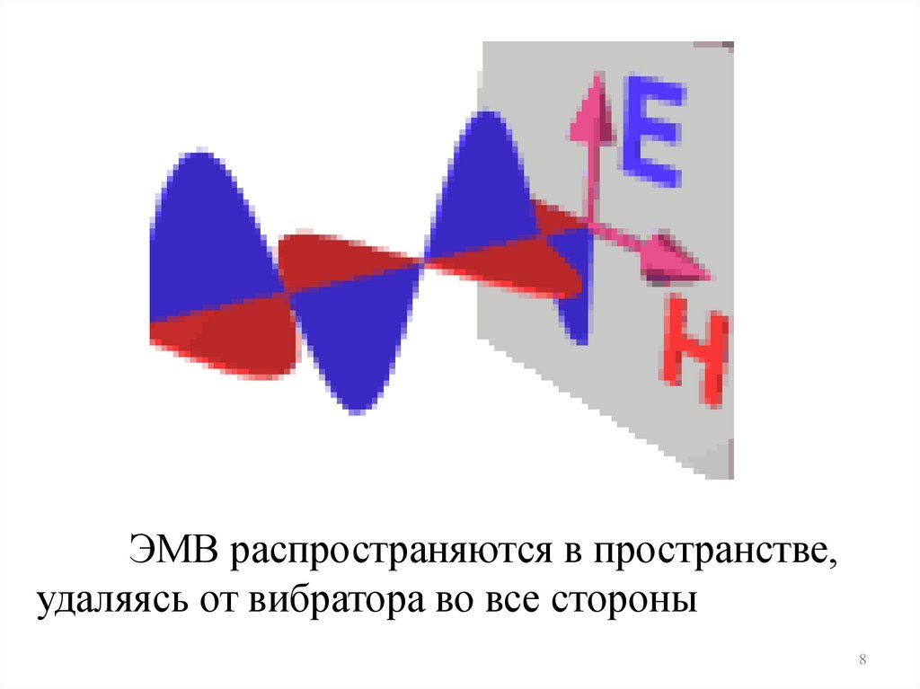 ЭМВ распространяются в пространстве,удаляясь от вибратора во все стороны