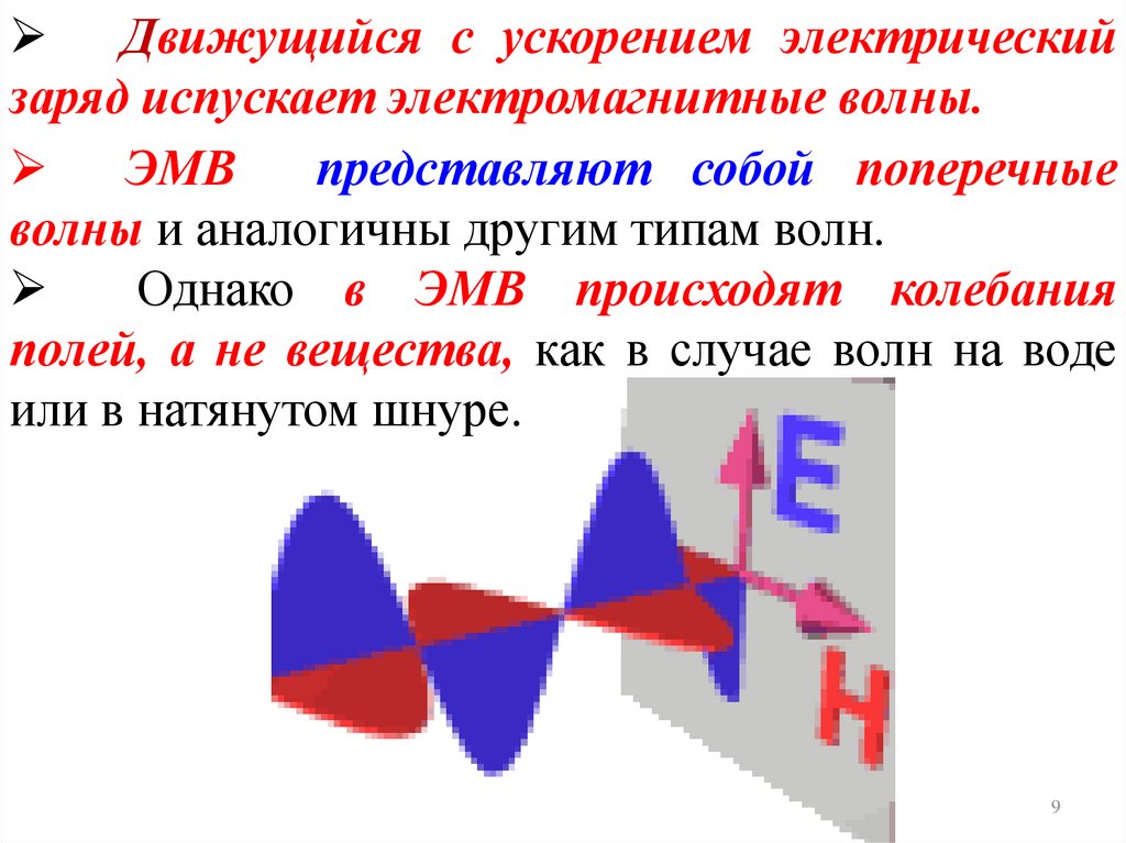 Движущийся с ускорением электрическийзаряд испускает электромагнитные волны.