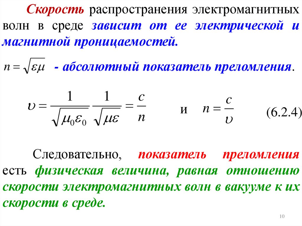 Скорость распространения электромагнитныхволн в среде зависит от ее электрической и