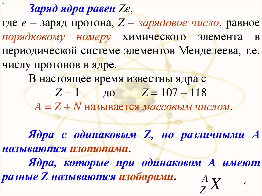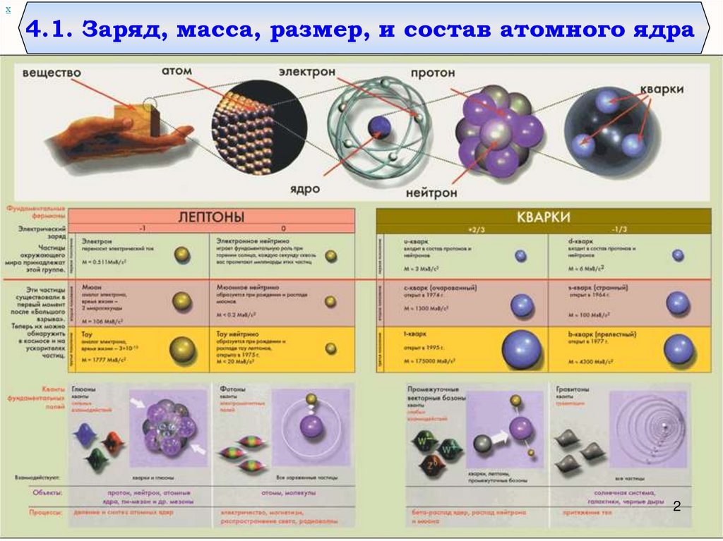 х4.1. Заряд, масса, размер, и состав атомного ядра
