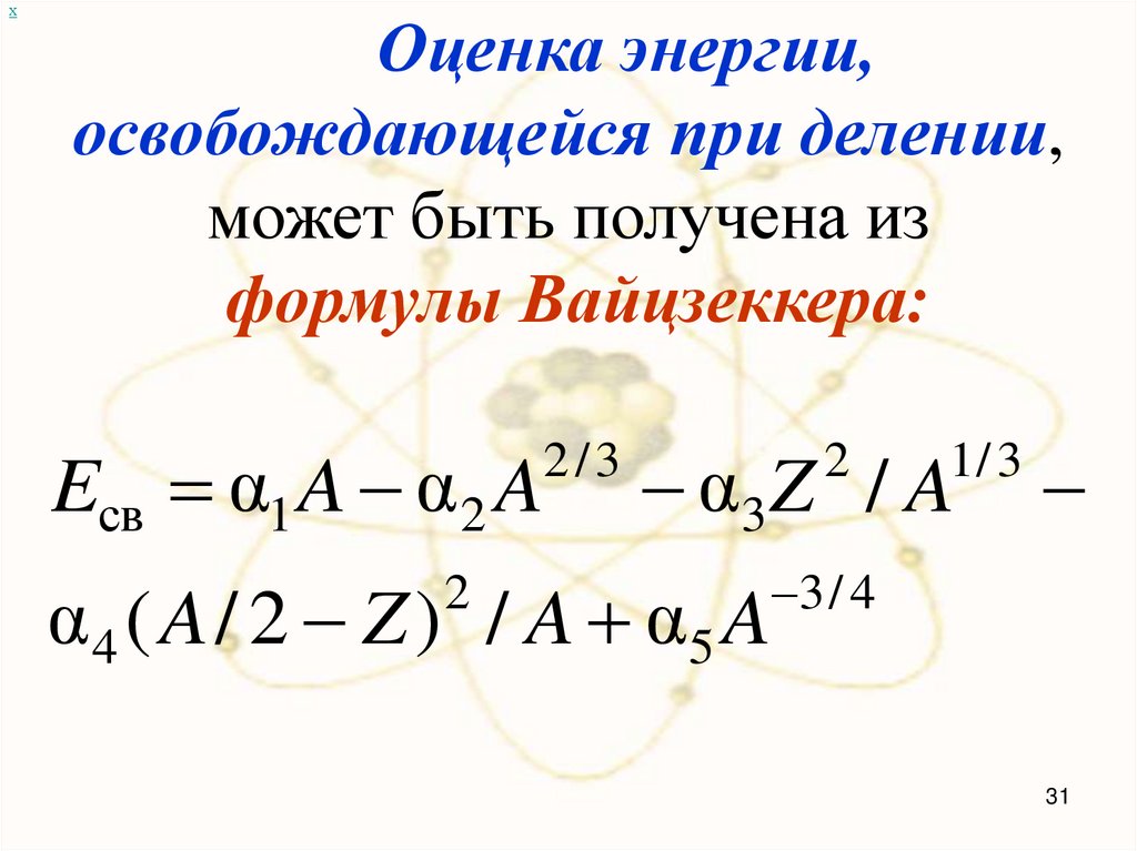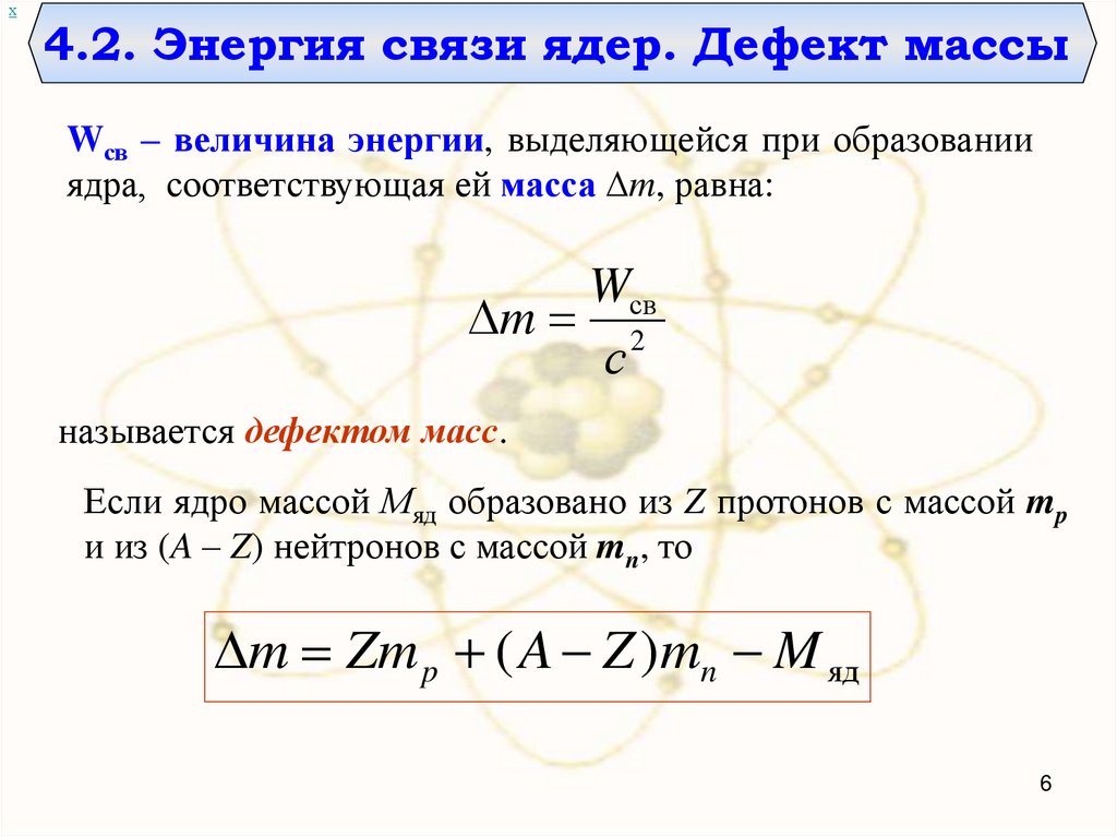 Wсв mс 2 ( Zm p ( A Z )mn M ат )с 2