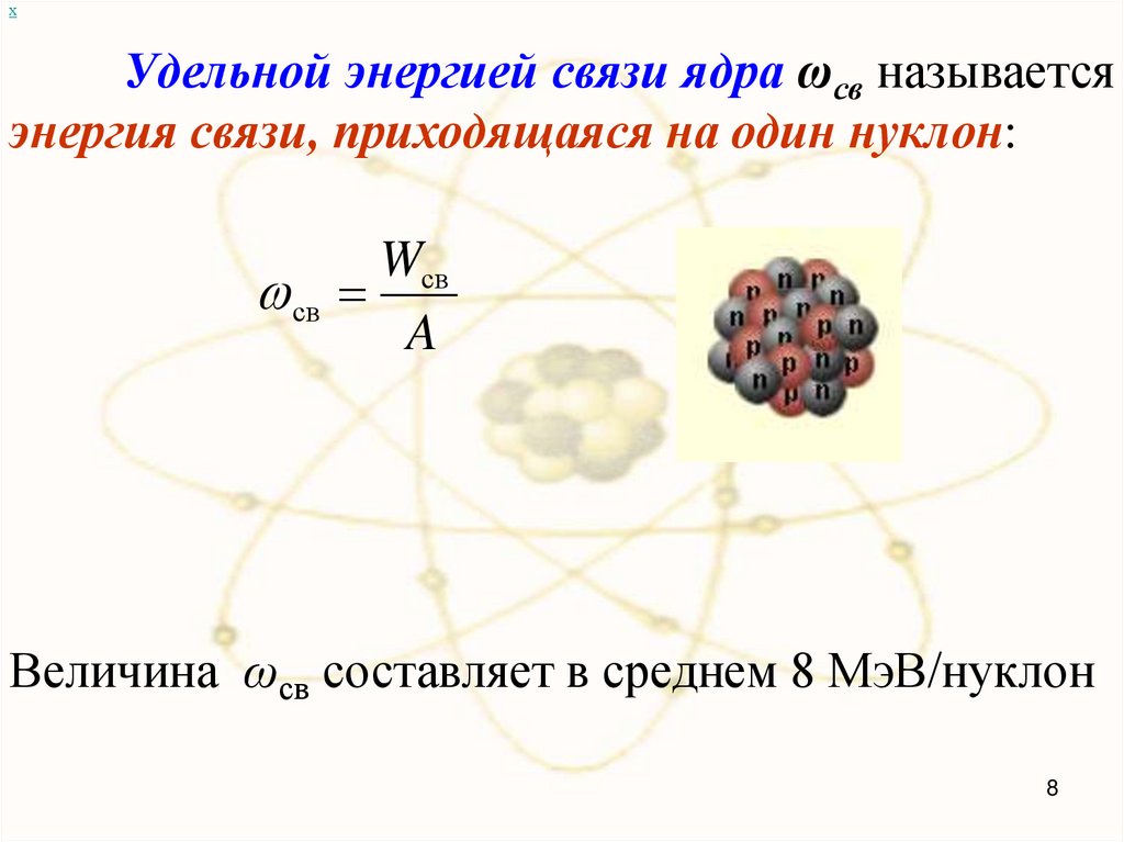Величина ωсв составляет в среднем 8 МэВ/нуклон