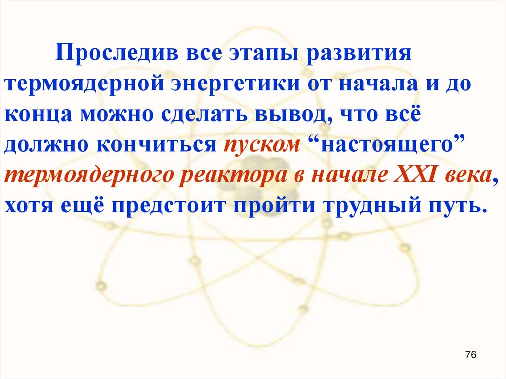 Проследив все этапы развитиятермоядерной энергетики от начала и до