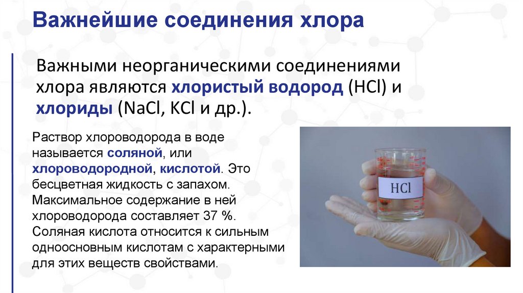 Важнейшие соединения хлораВажными неорганическими соединениями