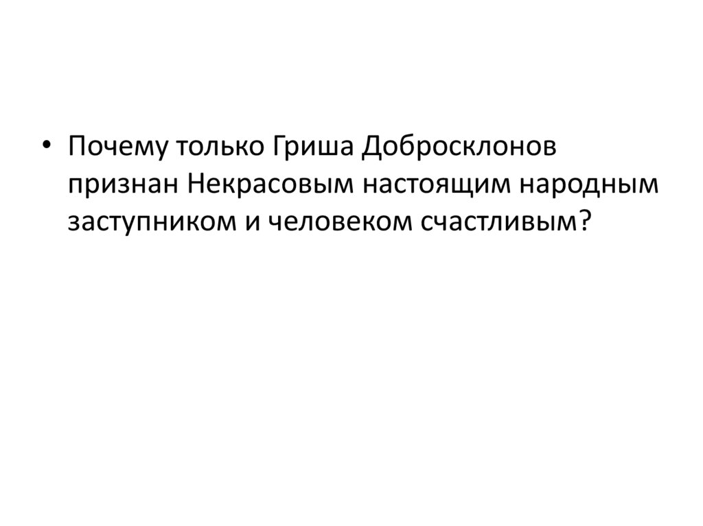 • Почему только Гриша Добросклоновпризнан Некрасовым настоящим народным