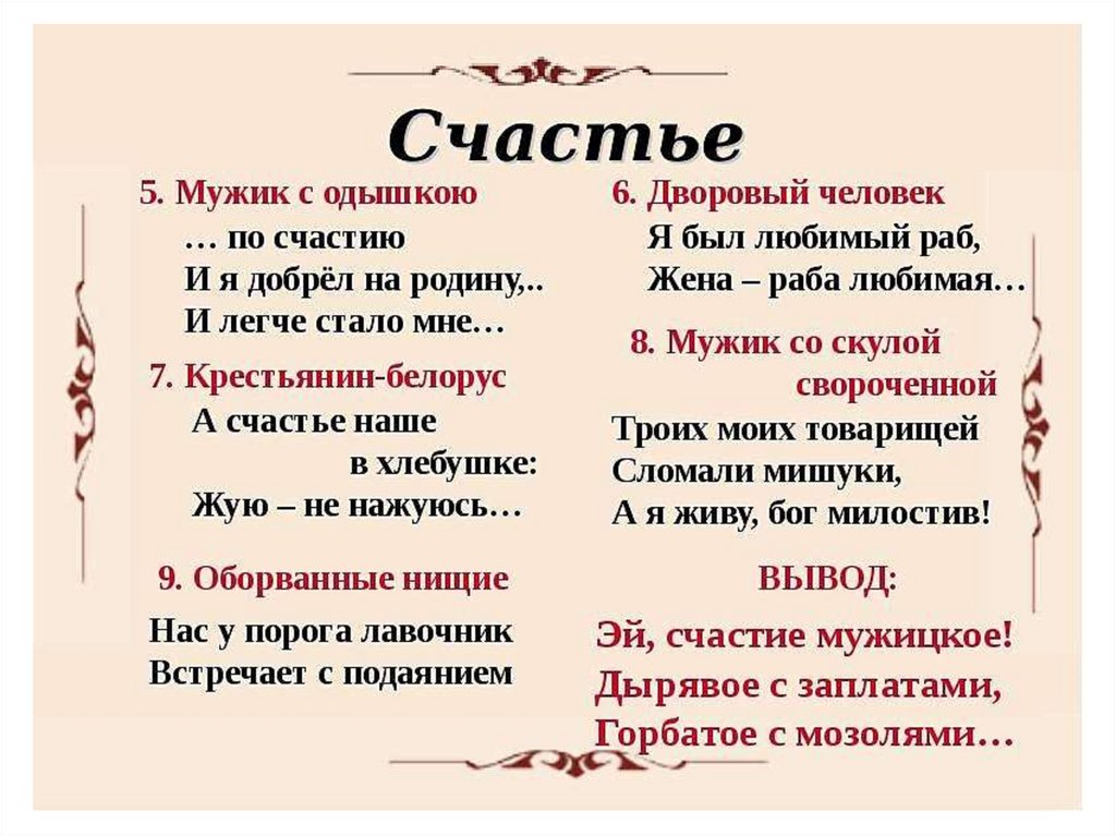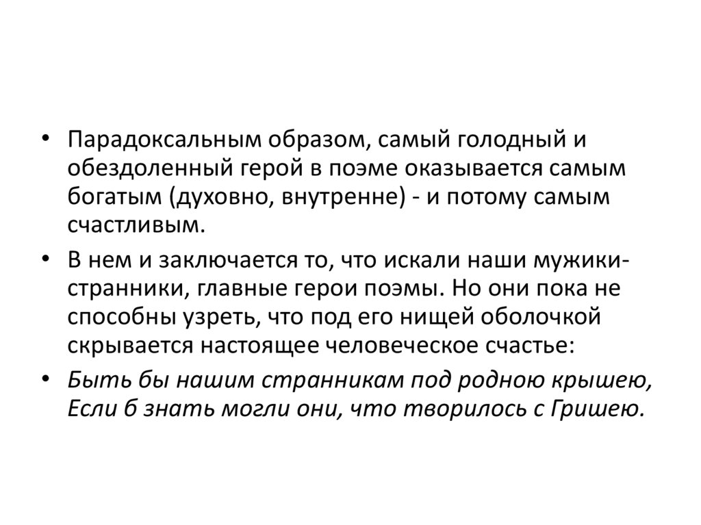 • В нем и заключается то, что искали наши мужикистранники, главные герои поэмы. Но они пока не
