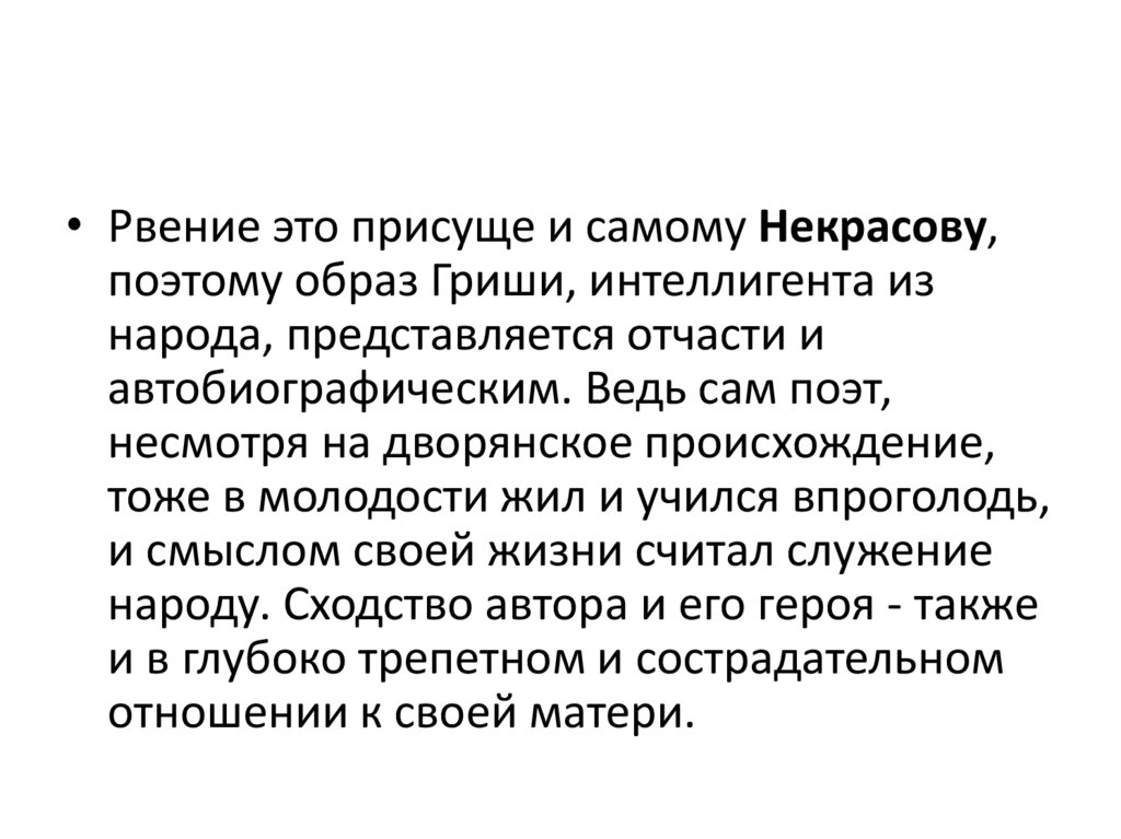• Рвение это присуще и самому Некрасову,поэтому образ Гриши, интеллигента из