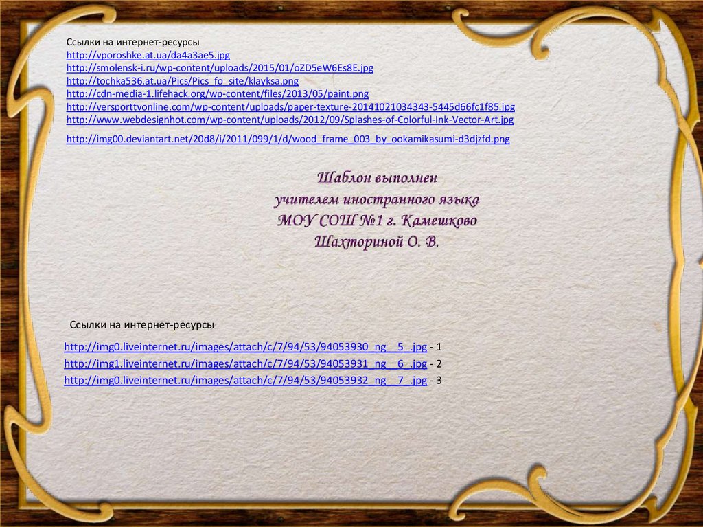Ссылки на интернет-ресурсыhttp://vporoshke.at.ua/da4a3ae5.jpg