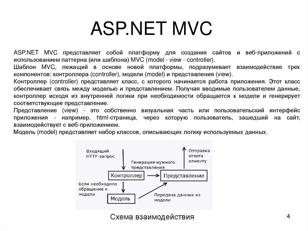 ASP.NET MVCASP.NET MVC представляет собой платформу для создания сайтов и веб-приложений с