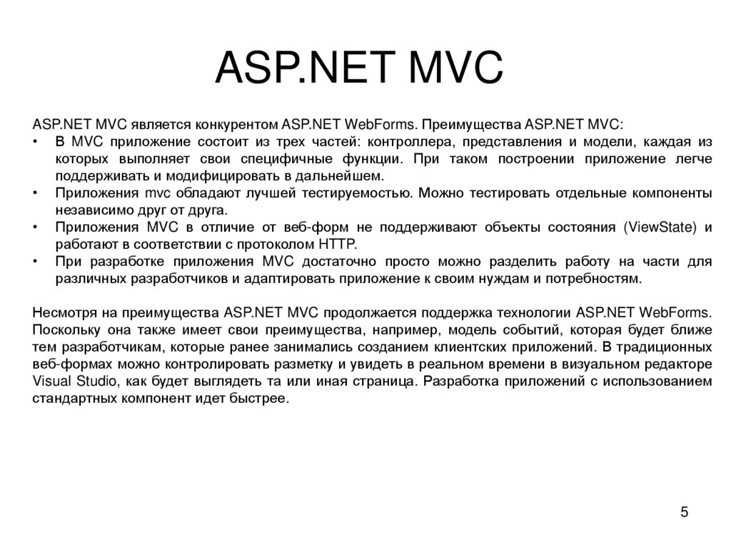 ASP.NET MVCASP.NET MVC является конкурентом ASP.NET WebForms. Преимущества ASP.NET MVC: