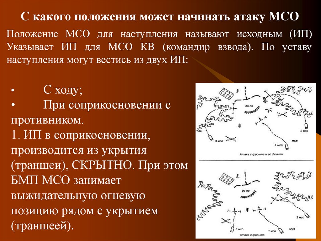 С какого положения может начинать атаку МСОПоложение МСО для наступления называют исходным (ИП)